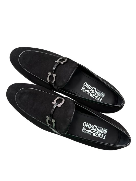 Salvatore Ferragamo Gancini Suede Loafers – Black | Made in Italy | Size 10 (New)
