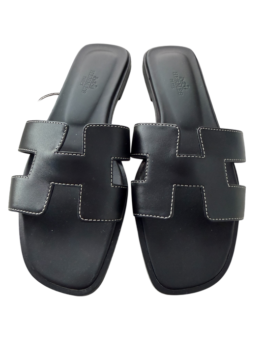 Hermes Black Oran with Contrast Stitching Size: 6.5 (New)