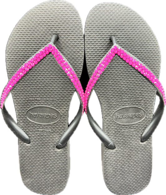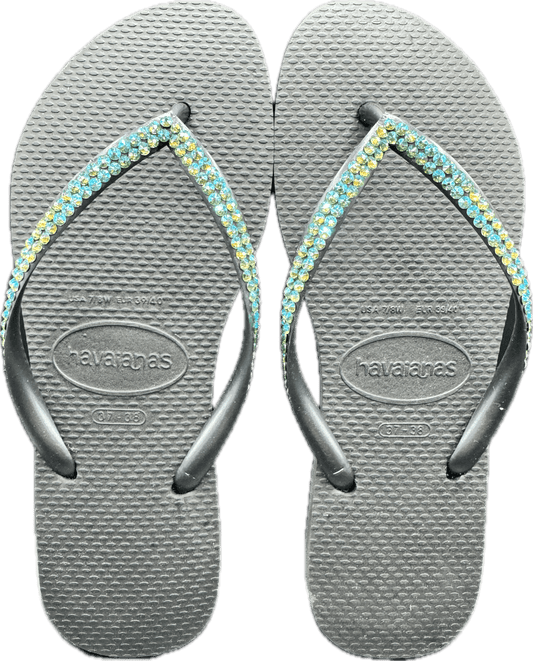 Slim Sand Grey & Light Golden Flip Flops | Light Colorado Topaz AB Crystals