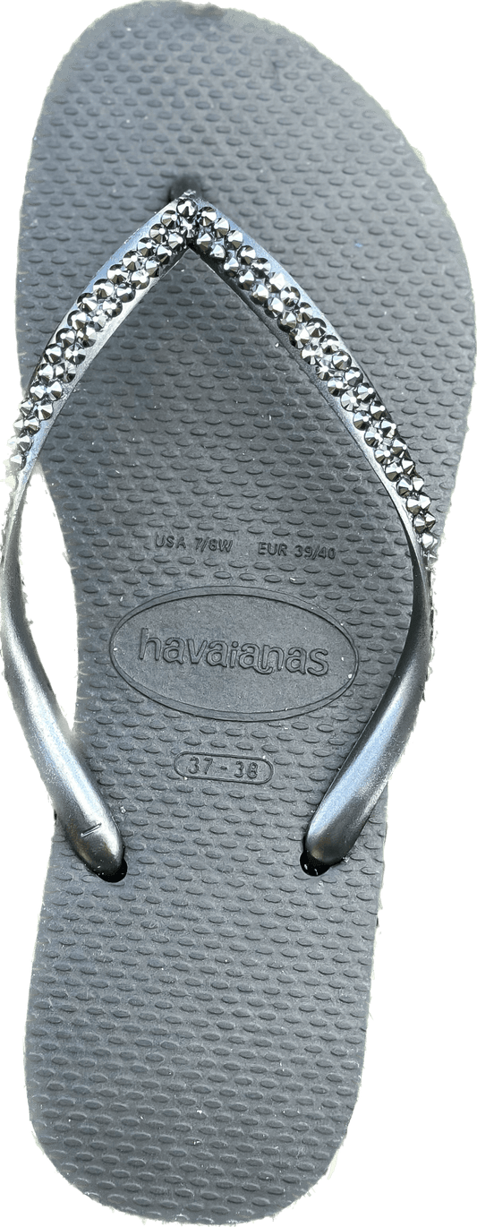 Slim Black Flip Flops | Peridot Shimmer Crystals