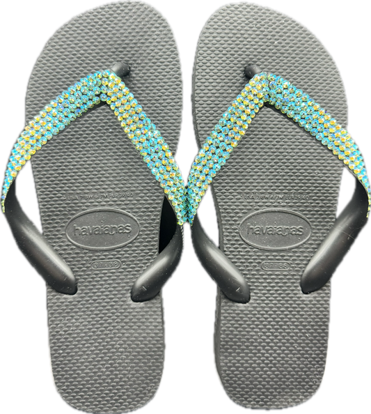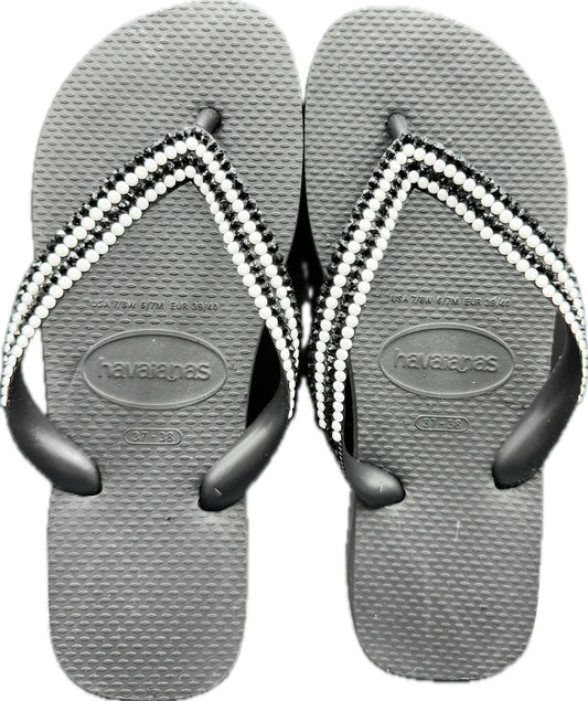 Top Black Flip Flops | Jet & White Chalk Crystals
