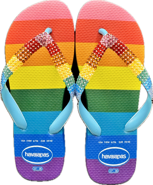 Top Turquoise & Pink Flip Flops | Electric Pink & Light Turquoise Crystals