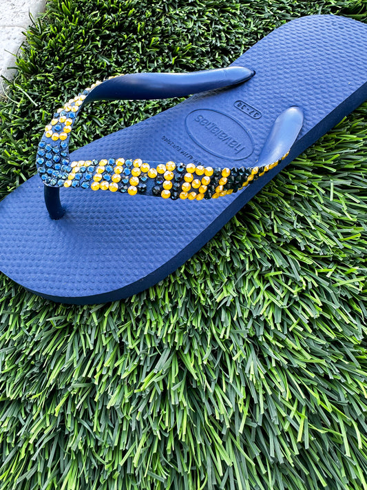 Top Navy Flip Flops | Montana & Buttercup Crystals (Augustana University)