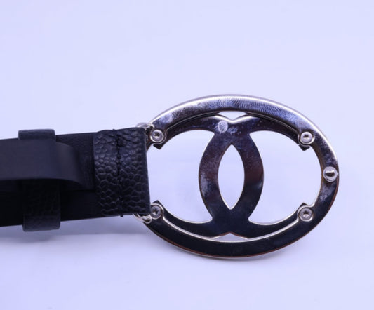 CHANEL Black Caviar CC Logo Belt