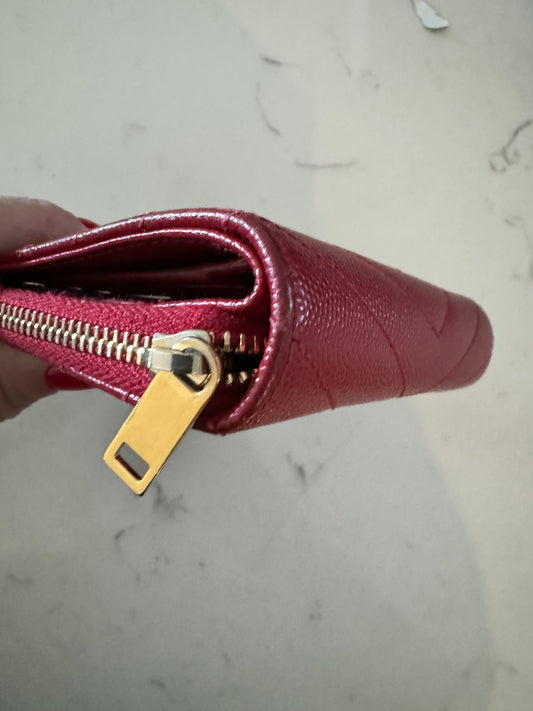 YSL Red CASSANDRE MATELASSÉ compact zip around wallet in grain de poudre leather