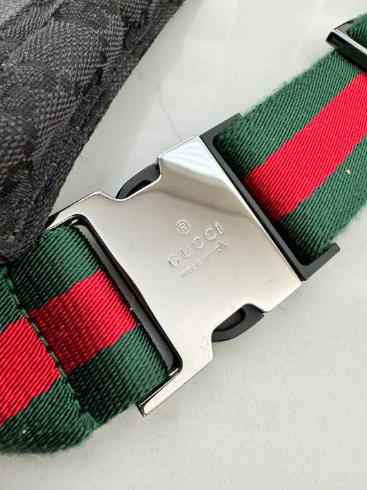 GUCCI Black GG Canvas Black Double Pocket Waist Pouch (Pre-Loved)