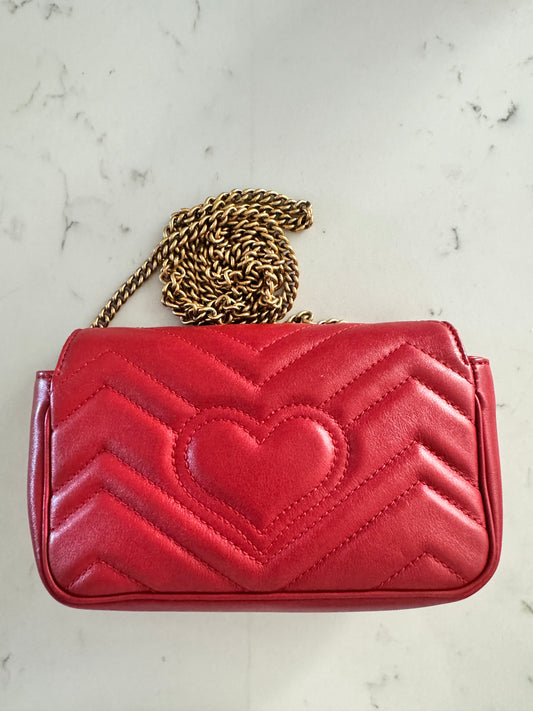 GUCCI Red Super Mini Marmont Matelasse Shoulder Bag with Brushed Gold Hardware (Pre-Loved)