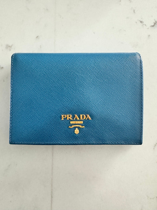 PRADA Saffiano Blue Bifold Wallet (New Full Set)