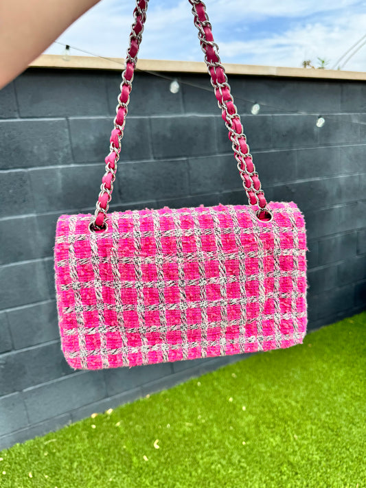 CHANEL Medium Double Flap Pink/Black/White Tweed (Pre-Loved)
