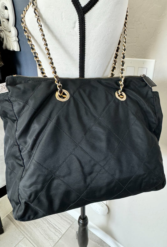 PRADA Black Nylon Tessuto Chain Shoulder Bag with Gold Hardware (Pre-Loved)