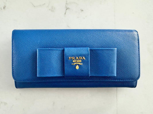 PRADA Blue Saffiano Bow Wallet (New Full Set)